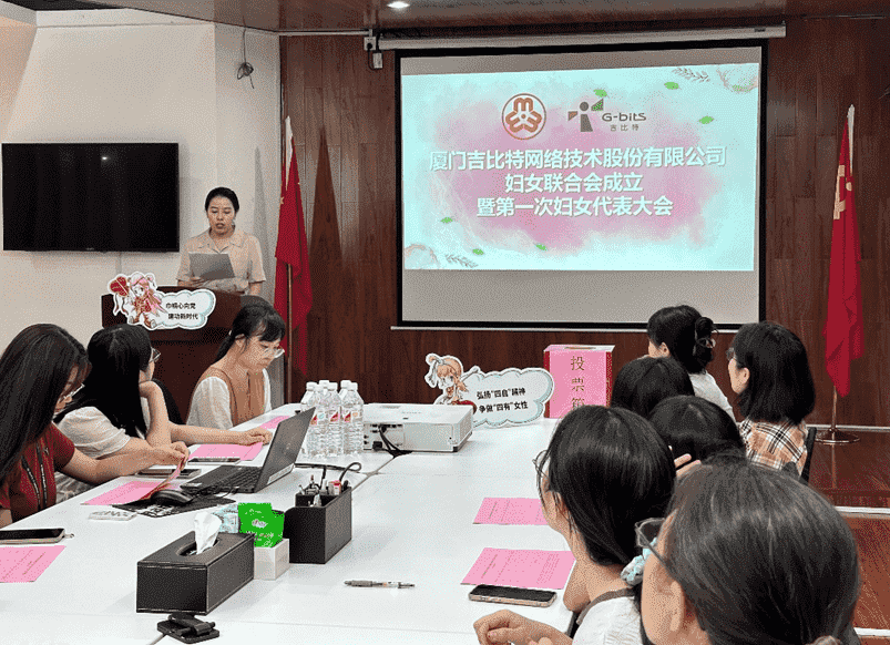 8月12日,,在厦门市妇联、、思明区妇联的指导下,,厦门J9.COM网络技术股份有限公司妇女联合会成立暨第一次妇女代表大会顺利召开。。。。会议选举产生了第一届执行委员会委员7名,,其中主席1名,,副主席2名。。